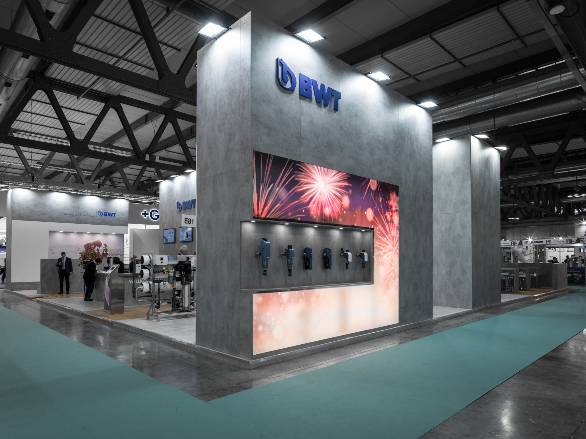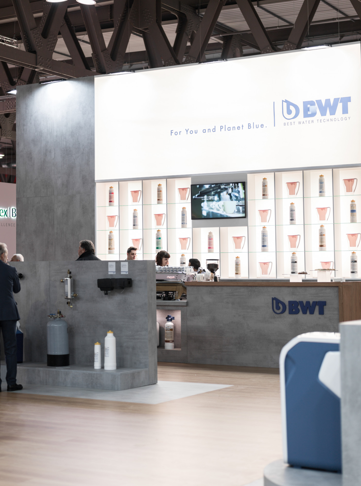 Ampie metrature e utilizzo di materiali innovativi. L'alternanza dei colori e dei materiali crea zone destinate a diverse attività. L'area accoglienza, l'area formazione, l'area meeting, l'area show e lo spazio destinato all'esposizione dei prodotti. Superfici materiche, monocromatiche che vengono interrotte dall'utilizzo di tinte forti legate alle diverse linee prodotto e riconducibili alla comunicazione corporate. La realizzazione è stata effettuata come da progetto sottoposto dal nostro partner BWT.