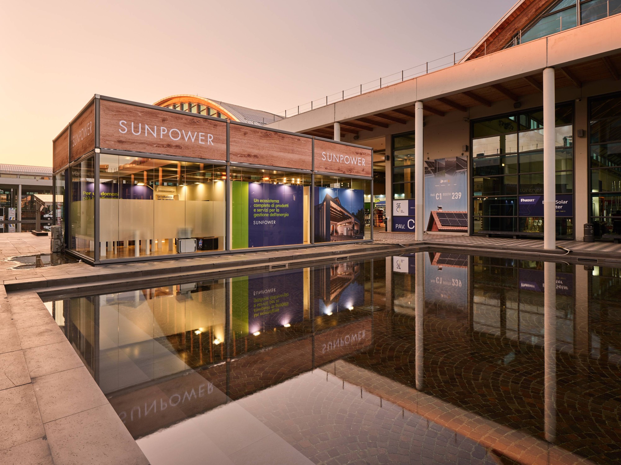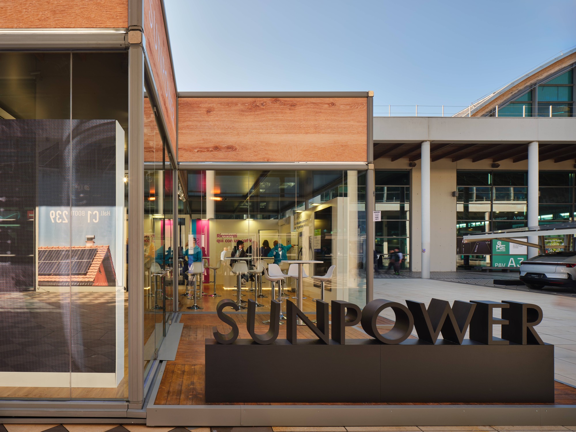 Uno stand all’aperto progettato per massimizzare l’impatto e la visibilità del brand. Dotata di grandi pareti di vetro e pareti LED posizionate strategicamente, la struttura funge da vetrina, catturando l’attenzione dei passanti e immergendoli nell’esperienza Sunpower. Grazie all’architettura trasparente e alla disposizione aperta, lo stand garantisce una vista libera del prodotto, rendendolo ancora più attraente per i visitatori.